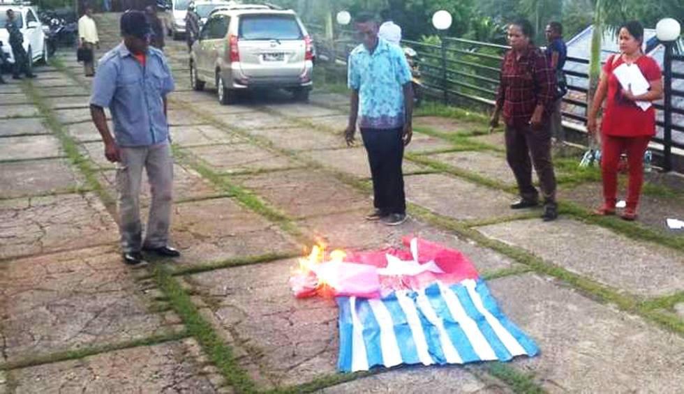 Masyarakat wamena menggambarkan peringatan hari lahirnya pancasila dengan membakar bendera bintang kejora dan KNPB.