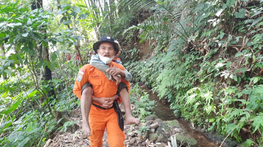 Pencarian tim SAR gabungan dengan metode traking menyusuri lokasi terakhir korban terihat oleh saksi. Setelah upaya pencarian tim SAR gabungan, survivor berhasil ditemukan kurang lebih 100 meter dari titik lokasi terakhir dilihat.