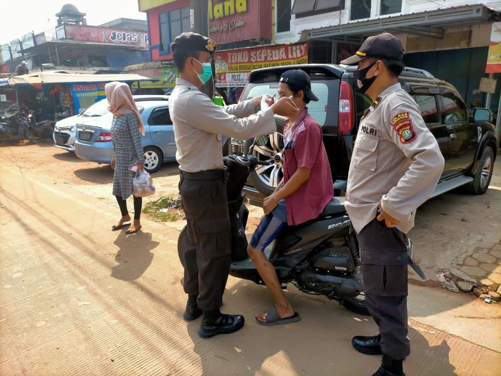 TANGERANG, Bhayangkaraperdananews.com – Polsek Curug Tangerang Selatan Laksanakan pembagian 100 pcs masker kepada pengguna jalan yang tidak memakai masker , dalam giat tersebut tak hanya bagikan masker tapi juga sosialisasikan prokes yang berlangsung di Jl.Raya STPI km 05 ( Depan Polsek Curug) Kel.Curug Kulon kec.Curug Kab. Tangerang. minggu (23/05/21).