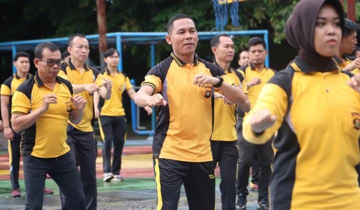 LAHAT | bhayangkaraperdananews.com – Kapolres Lahat AKBP God Parlasro S. Sinaga, SH, S.I.K, MH, melaksanakan olah raga bersama personel polres dan polsek jajaran.