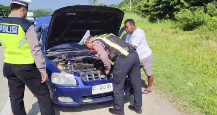 “Petugas kami secara rutin melaksanakan patroli di jalur tol untuk memastikan kelancaran arus lalu lintas serta memberikan bantuan kepada pengguna jalan yang mengalami kendala. Dalam kejadian ini, anggota segera membantu proses evakuasi kendaraan yang mogok agar tidak membahayakan pengendara lain maupun menimbulkan kemacetan,” ujar AKP Eka Hendra Ardiansyah.