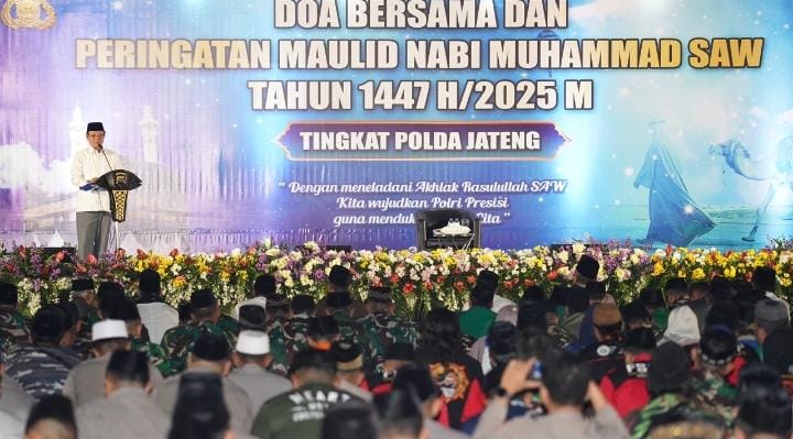 Wakapolda Jateng Brigjen Pol Latif Usman, yang membacakan sambutan Kapolda Irjen Pol Ribut Hari Wibowo, menyampaikan apresiasi atas kehadiran seluruh tamu undangan dan kerja keras panitia. Ia mengajak seluruh personel dan masyarakat menjadikan Maulid Nabi sebagai momentum memperkuat moral, keimanan, serta persatuan di Jawa Tengah.