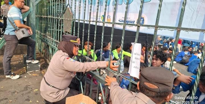 Momen humanis juga tampak ketika Polwan negosiator berinteraksi hangat dengan beberapa pengunjuk rasa dari balik pintu gerbang. Di tengah cuaca yang terik, petugas bahkan membagikan air mineral kepada para pengunjuk rasa agar tidak dehidrasi saat berorasi di bawah terik matahari.