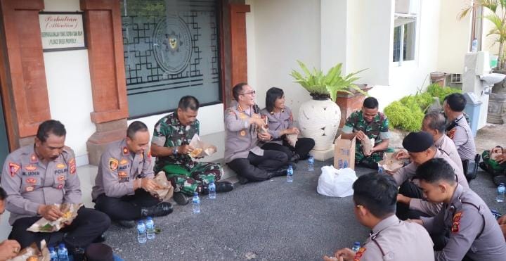 Hadir pula Danramil 1611-07/Denpasar Barat, Mayor Inf. Ida Bagus Swatama, meski sederhana tetapi personel Nampak sangat gembira menyantap makanan dan ini menunjukan kedekatan pimpinan dengan anggotanya, “Saya mengajak anggota untuk istirahat makan siang sebelum kembali melaksanakan tugas,” Tambah Kombes Bambang Yugo Pamungkas.