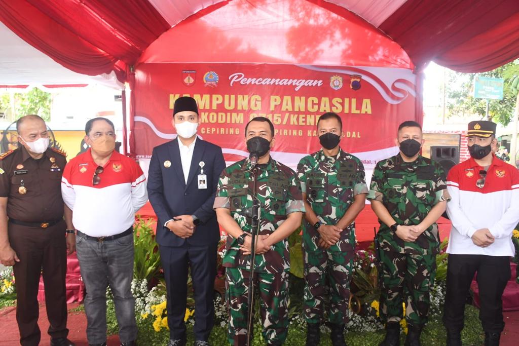 KENDAL, bhayangkaraperdananews.com – Pangdam IV/Diponegoro Mayjen TNI Rudianto bersama Forkopimda Kendal mencanangkan Kampung Pancasila bertempat di Desa Cepiring, Kab. Kendal. Hal ini sebagai bentuk dukungan toleransi antar umat beragama serta gerakan hidup rukun antar sesama masyarakat sesuai dengan nilai-nilai yang terkandung dalam butir Pancasila, Jumat (01/04/2022).