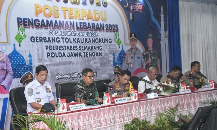JATENG, bhayangkaraperdananews.com | Semarang – Pangdam IV/Diponegoro dampingi Kapolri Jenderal Polisi Drs. Listyo Sigit Prabowo, M.Si., dan Kasum TNI Letjen TNI Bambang Ismawan, S.E., M.M., dalam melakukan peninjauan Gerbang Tol Kalikangkung guna melihat sejauh mana kesiapan Polda Jateng dalam mengelola arus mudik pada Operasi Ketupat Candi 2023. Pada pelaksanaannya kegiatan tersebut juga dihadiri oleh Kapolda Jateng Irjen. Pol. Drs. Ahmad Luthfi, S.St.Mk., S.H. Selasa (18/4/2023).