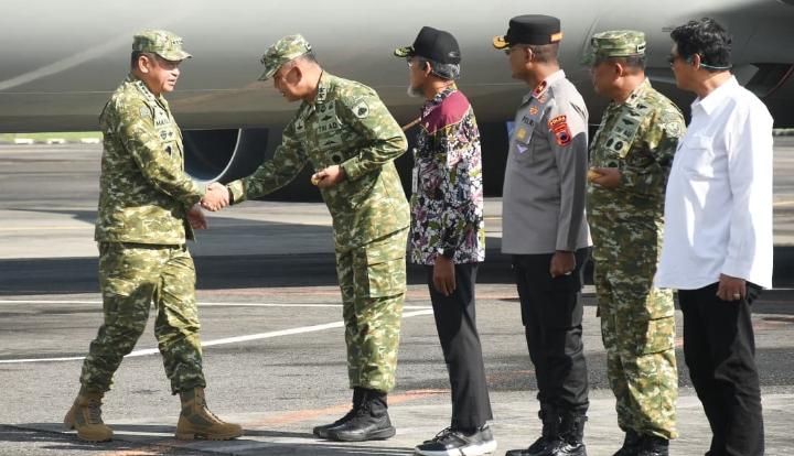 JATENG | bhayangkaraperdananews.com – Pangdam IV/Diponegoro Mayjen TNI Achiruddin, S.E., M.Han., menyambut kunjungan kerja Menteri Pertahanan RI Jenderal TNI (Purn) Dr. Sjafrie Sjamsoeddin dan Panglima TNI Jenderal TNI Agus Subiyanto, S.E., M.Si., di Lanumad Ahmad Yani, Kamis (23/4/2026). Kedatangan rombongan tingkat pusat yang juga didampingi Kepala Staf Angkatan Darat Jenderal TNI Maruli Simanjuntak, M.Sc., ini merupakan bagian dari agenda penguatan pertahanan negara di wilayah Jawa Tengah.