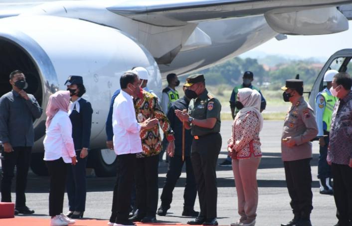 Berangkat dari Bandara Halim Perdanakusuma, Jakarta, Presiden dan rombongan lepas landas dengan menggunakan Pesawat Kepresidenan Indonesia-1, sekitar pukul 10.40 WIB setibanya di Pangkalan TNI AU Adi Soemarmo, Kabupaten Boyolali. RI 1 beserta rombongan disambut langsung oleh Gubernur Jateng H. Ganjar Pranowo, S.H., M.I.P., Wakil Walikota Solo Drs. Teguh Prakosa, Kapolda Jateng Irjen. Pol. Drs. Ahmad Luthfi, S.H., S.St., M.K. dan Komandan Lanud Adi Soemarmo Marsekal Pertama TNI Agus Setiawan, S.T.