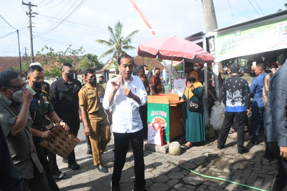 Sembari mengecek harga barang, disela sela kunjungannya Presiden turut membagikan Bantuan Langsung Tunai (BLT) dan sembako kepada para pedagang, sekaligus menyapa para masyarakat yang hadir.