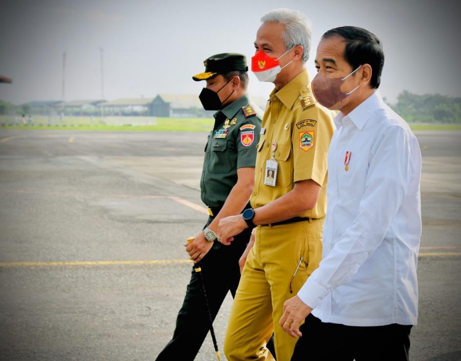 Dalam kunjungannya ke Jateng, Presiden didampingi oleh Menteri Sekretaris Negara Prof. Dr. Pratikno, M.Soc.Sc., Menteri Lingkungan Hidup dan Kehutanan Dr. Ir. Siti Nurbaya Bakar, M.Sc., Menteri BUMN Erick Thohir, B.A., M.B.A., Kepala Sekretariat Presiden Drs. Heru Budi Hartono, M.M., Sekretaris Militer Presiden Marsda TNI Mohamad Tonny Harjono, S.E., Komandan Paspampres Mayjen TNI Tri Budi Utomo, S.E.,, dan Deputi Bidang Protokol, Pers, dan Media Sekretariat Presiden Bey Triadi Machmudin, S.E., M.T. (MBPN-Sunarno – Pendam IV/Diponegoro)