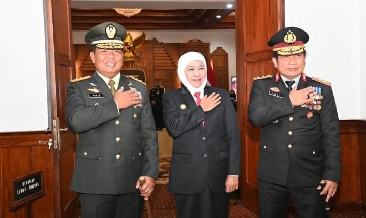 Selain dihadiri, Pangdam V Brawijaya Mayjen TNI Farid Makruf, upacara itu juga dihadiri Gubernur dan Wakil Gubernur Jawa Timur Khofifah Indar Parawansa bersama Emil Elestianto Dardak serta seluruh jajaran Forkopimda Jawa Timur. (MBPN-IRWIN)
