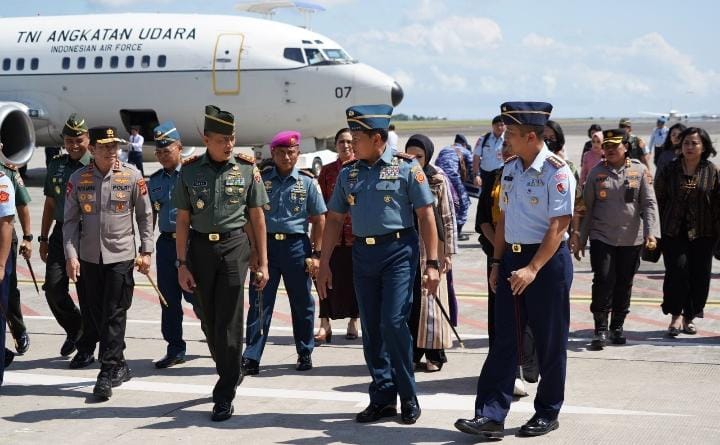 Panglima TNI bersama rombongan berangkat dari Halim Perdanakusuma, Jakarta dengan menggunakan Pesawat Boeing TNI AU, dan setibanya di Bandara I Gusti Ngurah Rai, selain disambut oleh para pejabat terkait juga menerima jajar kehormatan secara militer dari Regu Jajar Kehormatan TNI.
