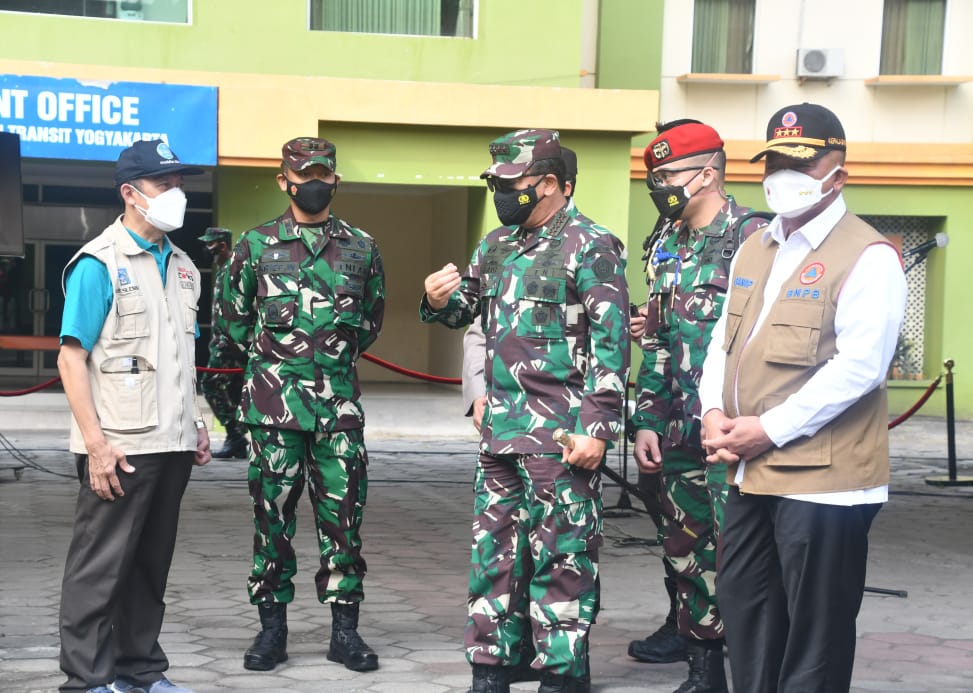 SLEMAN, bhayangkaraperdananews.com – Panglima TNI Marsekal TNI Dr. (H.C.) Hadi Tjahjanto, S.I.P. , bersama Kepala Badan Pemeliharaan Keamanan (Kabaharkam) Polri Komjen. Pol. Drs. Arief Sulistyanto, M.Si. dan Kepala BNPB Letjen TNI Ganip Warsito, S.E., M.M. beserta rombongan meninjau isolasi terpusat di Asrama Haji Sleman di Jalan Lingkar Utara, Sinduadi, Mlati, Sleman, Daerah Istimewa Yogyakarta, Minggu (25/07/2021).