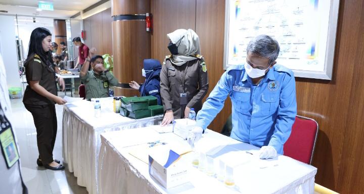 Dia menyampaikan bahwa pelaksanaan tes urine narkotika yang diikuti oleh 490 orang pegawai dilingkungan Jambin Kejagung.