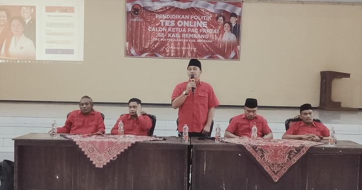 REMBANG | bhayangkaraperdananews.com – Tes Online Calon PAC Partai PDI Perjuangan se Kabupaten Rembang acara berlangsung di Gedung Balai Kartini Kabupaten Rembang, yang di hadiri oleh DPRD PDI Perjuangan Provinsi Jawa Tengah Indro, Wakil DPRD Fraksi PDIP H Ridwan juga sebagai Ketua DPC Partai PDIP Kabupaten Rembang, Anggota DPRD fraksi PDI Perjuangan dan seluruh Calon PAC PDIP Kabupaten Rembang berlangsung pada Hari Minggu, 19/4.