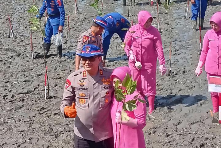 Penanaman pohon mangrove tersebut dilakukan serentak di 23 Polres dan Polresta dalam rangka mendukung program “Aceh Hijau”.