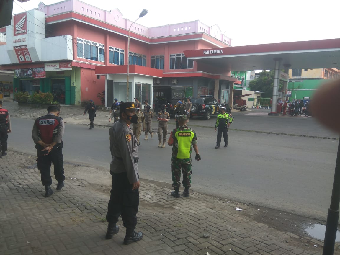 Kegiatan patroli menjelang hari Raya Idul Fitri dilakukan sebagai antisipasi penyebaran covid-19 dengan mengingatkan masyarakat yang sedang aktivitas di tempat tersebut agar tetap menjalankan protokol kesehatan terutama penggunaan masker di area publik.
