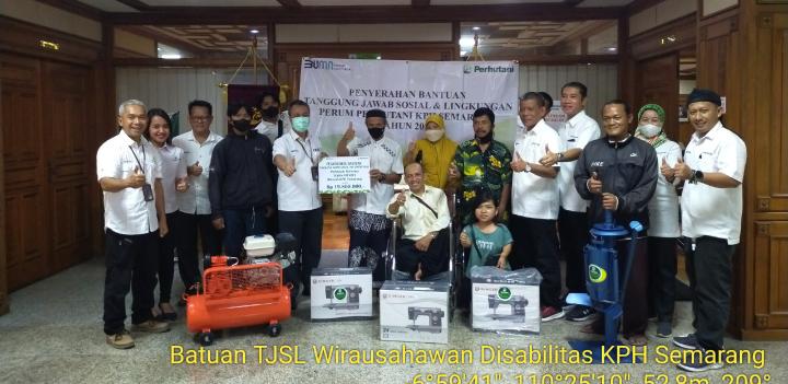 SEMARANG, bhayangkaraperdananews.com – Bertempat di Kantor Perum Perhutani Divisi Regional (Divreg) Jawa Tengah lantai 3 (tiga), Perhutani menyerahkan bantuan sarana kewirausahaan bagi 6 (enam) orang penyandang difabel, Senin (14/11/22).
