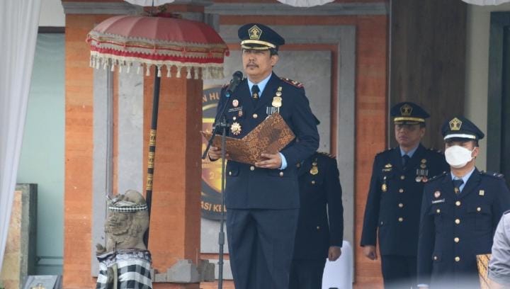 DENPASAR, bhayangkaraperdananews.com – Kamis (26/01/2023) Kepala Kantor Wilayah Kemenkumham Bali, Anggiat Napitupulu memimpin Upacara Peringatan Hari Bhakti Imigrasi ke-73. Penyelenggaraan Upacara gabungan HBI ke-73 tahun ini dipusatkan di Kantor Imigrasi Kelas I TPI Denpasar, yang dihadiri oleh Para Pimpinan Tinggi Pratama, Para Kepala UPT, Purnabakti Pengayoman, Para Pejabat Administrasi, serta jajaran Imigrasi.