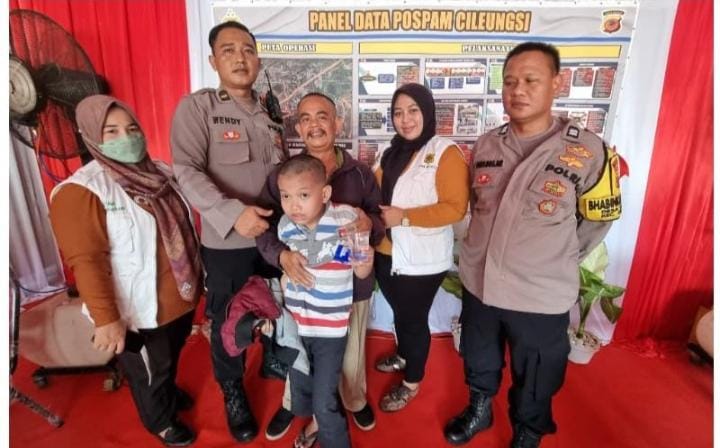 Kapolsek Cileungsi Polres Bogor Kompol Zulkarnaen,.S.H,.S.I.K, MIk mengatakan Bahwa anak yang terpisah dengan orang tuanya tersebut berhasil ditemukan saat setelah orang tuanya mendatangi pos pengamanan operasi ketupat Lodaya 2023 Polsek Cileungsi Polres Bogor. Yang mana dari informasi yang kami dapatkan dari orang tuanya tersebut bahwa anaknya hilang saat setelah memotong rambut di Wilayah Metland Cileungsi.