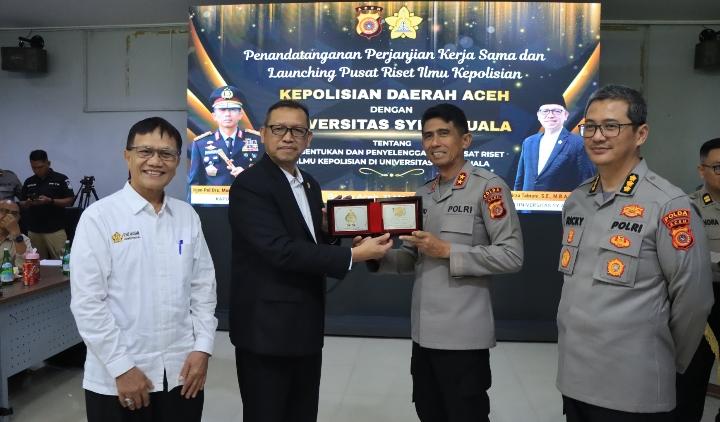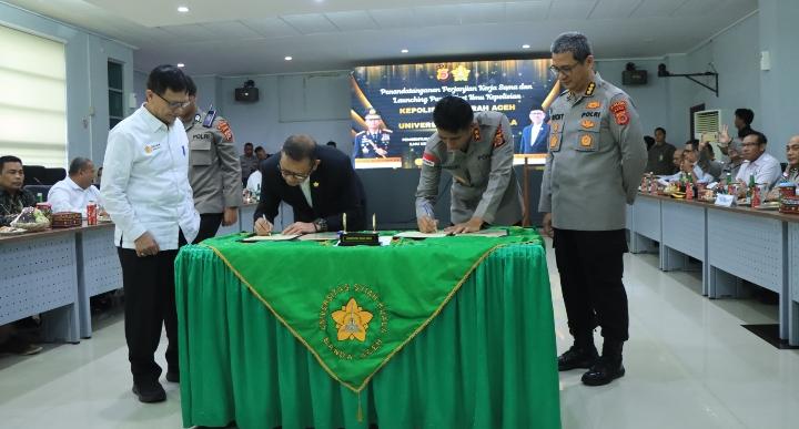 BANDA ACEH | bhayangkaraperdananews.com – Polda Aceh resmi menjalin kerja sama strategis dengan Universitas Syiah Kuala (USK) melalui penandatanganan perjanjian kerja sama di Aula Rektorat USK yang selanjutnya dirangkaikan dengan launching Pusat Riset Ilmu Kepolisian di Gedung IKA USK, Banda Aceh, Selasa, 31 Maret 2026.