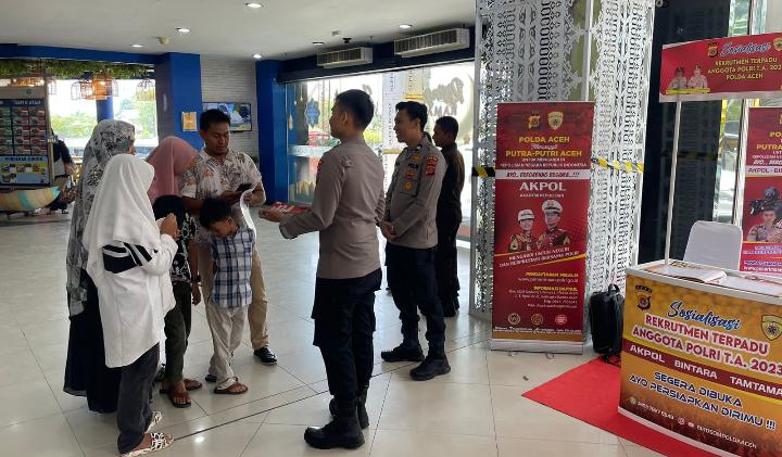 Sosialisasi penerimaan anggota Polri kepada masyarakat dilakukan di sejumlah tempat umum, untuk di Banda Aceh sudah dilakukan di sejumlah Warkop,pada Jum’at (17/3/23) dan Plaza Aceh, pada Senin (20/3/23), sambung Kabid Humas.