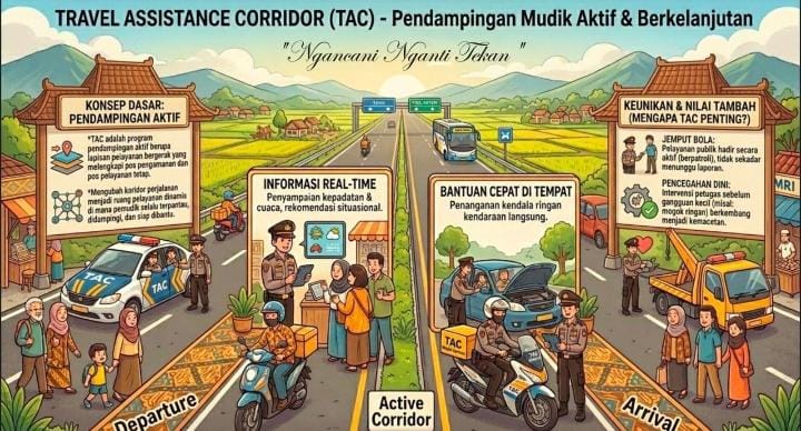 KOTA SEMARANG | bhayangkaraperdananews.com – Menyambut arus mudik Lebaran 2026, Polda Jawa Tengah menyiapkan berbagai inovasi pelayanan guna memastikan perjalanan masyarakat berlangsung aman, nyaman, dan lancar. Melalui konsep pelayanan bertajuk Safety and Hospitality, Polda Jateng menghadirkan Travel Assistance Corridor (TAC), sistem pengamanan dan pelayanan mudik terpadu yang terhubung dengan dashboard monitoring center secara real-time.