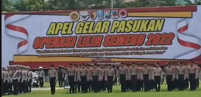 Pimpinan apel gelar pasukan Gubernur Jatim Khofifah membacakan amanat Kapolri Jenderal Polisi Listyo Sigit Prabowo, mengatakan Operasi Lilin 2022 yang diselenggarakan oleh Polri ini adalah operasi terpusat dan secara serentak di seluruh jajaran Polri, mulai dari tingkat Mabes Polri hingga kesatuan kewilayahan.