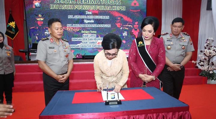 Plh. Kabidhumas Polda Kepri AKBP Surya Iswandar S.H menerangkan acara diawali dengan serah terima dan penandatanganan berita acara Ibu Asuh Polwan dari Ny. Sinche Aris Budiman kepada Ny. Imelda Tabana Bangun serta penyematan Pin dan Selendang Ibu Asuh Polwan Polda Kepri.