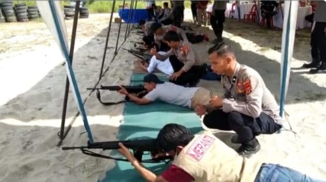Pelatihan singkat diberikan, mulai dari memegang senapan, cara memikul, mengunci, hingga membidik sasaran tembak. Semuanya harus teliti dan penuh kehati-hatian.