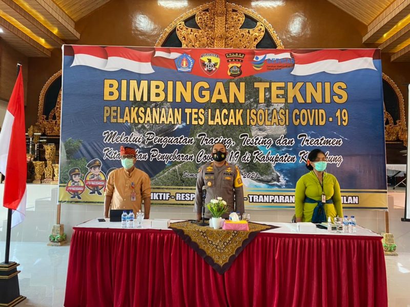 KLUNGKUNG, bhayangkaraperdananews.com – Bertempat di Aula Jalaga Dharma Pandapa Polres Klungkung melaksanakan Bimbingan Teknis Pelaksanaan Tes Lacak Isolasi Covid-19 dengan Tema “Melalui Penguatan Tracing Testing dan Treatmen Kita Tekan Penyebaran Covid 19 di Kabupaten Klungkung” oleh Dinas Kesehatan Provinsi Bali. Kamis, 06/05/2021.