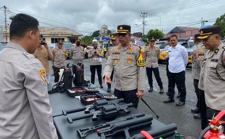 Kapolres lahat memeriksa satu persatu alat dan peralatan Dalmas serta Ranmor yang terdiri dari :