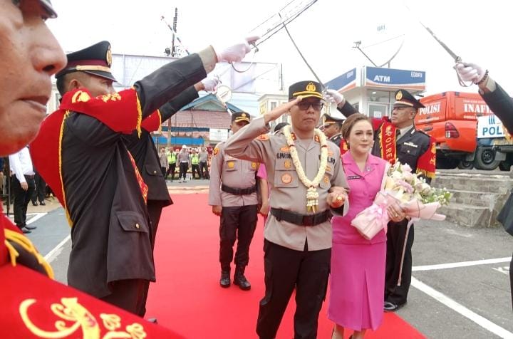 Kapolres Lahat AKBP God, Parlasro S.Sinaga, SH, S.I.K, MH, beserta ketua bhayangkari lahat Ny. Lilis Sinaga yang di dampingi oleh waka Polres Lahat dan ibu wakil ketua bhayangkari lari, memasuki gerbang pora sebagai tradisi kehormatan berjalan melewati pasukan pedang pora yang selanjutnya di sambut oleh PJU, kapolsek, perwira, anggota dan ASN polres Lahat menuju ruang Kapolres Lahat.
