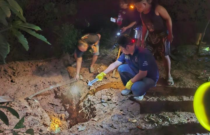 Menindaklanjuti informasi tersebut, saksi bersama perangkat desa dan warga setempat melakukan pengecekan ke lokasi dan menemukan sebuah lubang yang telah ditimbun kembali.