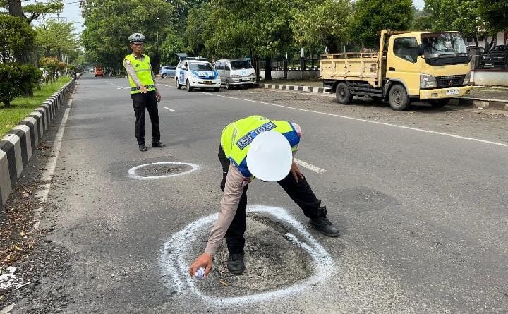 “Hasil survei ditemukan sejumlah jalan dalam kondisi berlubang. Kemudin kami lakukan penandaan dengan cat semprot serta mengambil dokumentasinya,” ucap Kasat Lantas.