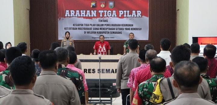 KAB. SEMARANG | bhayangkaraperdananews.com – Berkomitmen bersama menjaga Kamtibmas wilayah Kab. Semarang, Kamis 21 Agustus 2024 Polres Semarang menggelar Arahan Tiga Pilar di aula Condrowulan Polres Semarang.