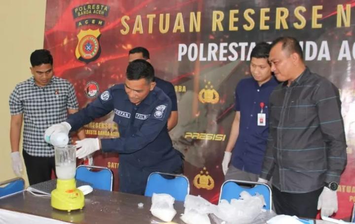 Perlu diketahui, barang bukti narkotika terlebih dahulu dilarutkan dengan alkhohol dan diblender untuk dimusnahkan, kemudian dibuang ke septick tank yang ada dihalaman Polresta Banda Aceh yang disaksikan oleh Kasi Pidum Kejari Aceh Besar Sakafa Guraba dan Airport Security, Rescue dan Fire Fighting Coordinator Avsec Nuzulul Akbar, sebut AKP Jabir.