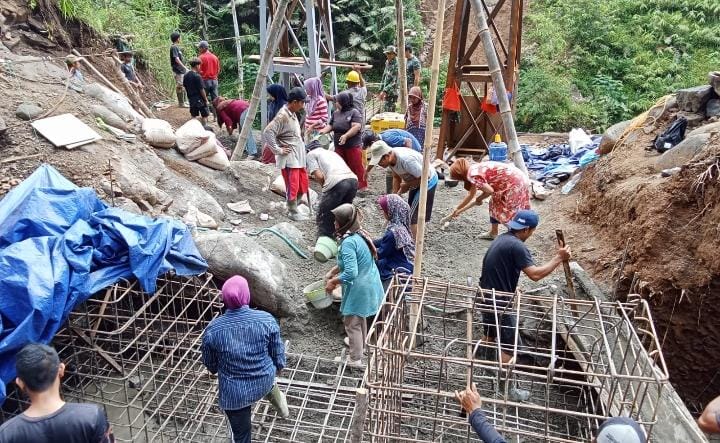 Prajurit Kodim 0704/Banjarnegara Satukan Dua Dusun Lewat Jembatan di Sungai Brakah