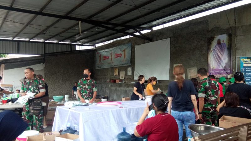Masakan yang berjumlah 1200 dalam bentuk nasi kotak ini secara higienis dan sehat disajikan oleh para TNI, Persit FKPPI dan Jemaat Gereja Bethel Indonesia untuk berbuka puasa yang akan dibagikan kepada warga masyarakat.