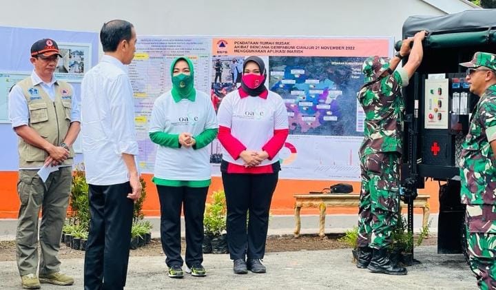 JABAR, bhayangkaraperdanamews.com – Presiden Joko Widodo menyerahkan langsung bantuan stimulan untuk perbaikan rumah warga terdampak gempa bumi Cianjur di Lapangan Tembak Tapal Kuda Yonif Raider 300, Kecamatan Karangtengah, Kabupaten Cianjur, Provinsi Jawa Barat, Kamis, 8 Desember 2022. Presiden berharap warga bisa segera memulai pembangunan rumahnya dengan pembersihan puing-puing bangunan.