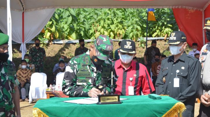 Penanda tanganan naskah serah terima yang dilaksanakan oleh Kasdim 0714/Salatiga dan Setda Kota Salatiga serta pemukulan Kentongan Setda yang disaksikan pejabat terkait menandai di mulainya Program TMMD ini.