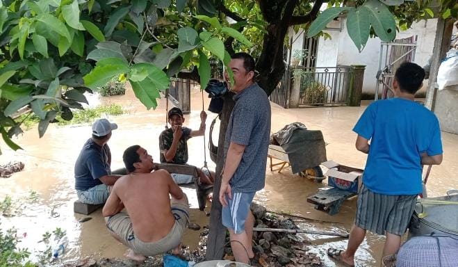 Dia menjelaskan, adapun luapan air itu sudah menggenangi rumah – rumah penduduk di Kampung 4, Desa Gunung Kembang.