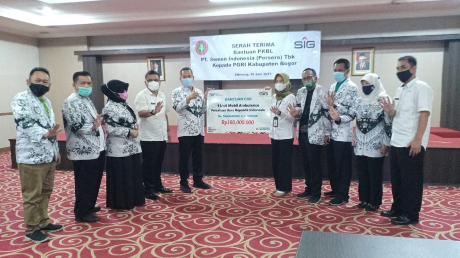 Acara dihadiri Ibu Nova dari Manajemen CSR SIG,Para Pengurus PGRI Kabupaten Bogor, dan Dinas Pendidikan Kabupaten Bogor, H. Amsohi Ketua PGRI Kabupaten Bogor saat di wawancarai awak media mengatakan”Alhamdulillah PGRI Kabupaten Bogor mendapatkan bantuan Ambulans dari CSR PT Semen Indonesia Grup (SIG),artinya Kita syukuri dan barokah buat PGRI, selesai itu kita terima dengan sabgat terimakasih kepada CSR yang sudah peduli Kepada PGRI terutama Para Guru,”ujarnya.