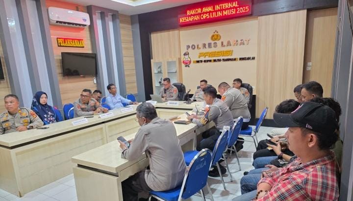 LAHAT | bhayangkaraperdananews.com – Dalam rangka memastikan kesiapan pelaksanaan Operasi Lilin Musi 2025, Polres Lahat menggelar Rapat Koordinasi Internal yang dipimpin Kapolres Lahat AKBP Novi Edyanto, S.I.K.,M.I.K, yang diwakili Waka Polres Kompol Liswan Nurhapis, SH, yang didampingi Kabag Ops Kompol Toni Arman, SH.,M.Si, kabag Log Kompol Jais Sembiring, SH.,MH dan dihadiri para pejabat utama Polres Lahat serta para Kapolsek jajaran. Rakor dilaksanakan sebagai langkah awal untuk menyatukan persepsi dan menyusun strategi pengamanan yang efektif, khususnya terkait keberadaan Pos Pengamanan (Pos PAM) dan Pos Pelayanan (Pos Yan).