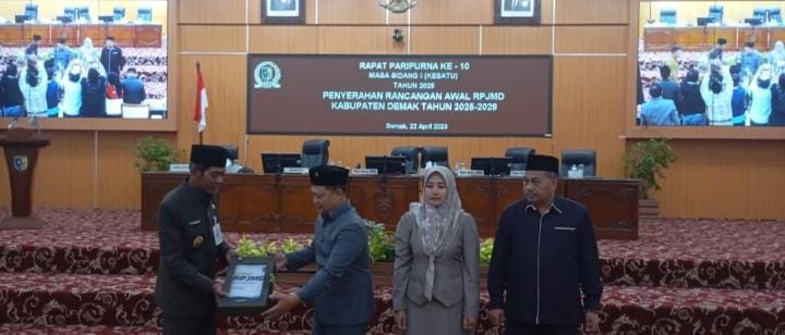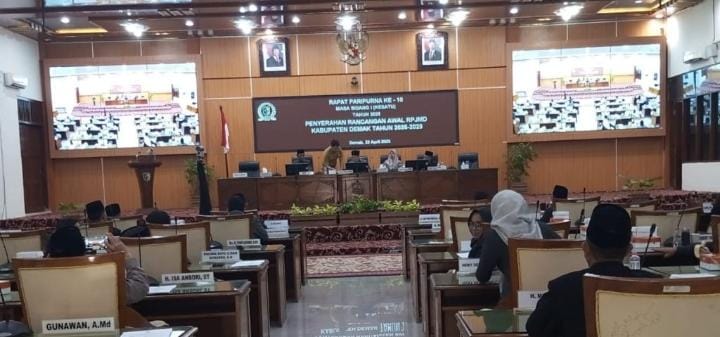 DEMAK | bhayangkaraperdananews.com – Rapat Paripurna DPRD Kabupaten Demak Ke -10 dan Ke – 11 masa Sidang 1 ( kesatu ) Tahun 2025 dengan agenda : Penyerahan Rancangan Awal RPJMD ( Rencana Pembangunan Jangka Menengah Daerah ) Kabupaten Demak Tahun 2025 – 2029 serta Penetapan dan Penyerahan Rekomendasi / Catatan Strategi DPRD Kabupaten Demak terhadap Laporan Keterangan Pertanggungjawaban ( LKPJ ) Bupati Demak Tahun Anggaran 2024 yang berlangsung di Ruang Rapat Paripurna DPRD Kabupaten Demak,Selasa ( 22/4/2025) pukul 09.30 WIB.
