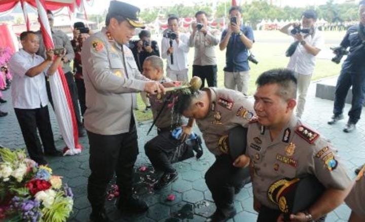 SURABAYA | bhayangkaraperdananews.com – Hari Bhayangkara ke 77, lebih kurang 603 personel Polri dan 1.056 personel PNS Polda Jatim naik pangkat.