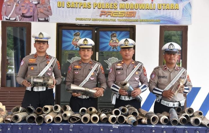 Bersama KBO Satlantas, Kanitregident dan kanitkamsel Satlantas Polres Morowali Utara, Ipda Gerfin juga menjelaskan bahwa dari hasil Razia yang dilakukan selama bulan Februari tahun 2025. Satuan Lalu Lintas telah memberikan sanksi tegas berupa penilangan kepada para pengendara yang menggunakan knlapot tidak sesuai spesifikasi atau Brong serta mengamankan barang bukti sebanyak 130 Knalpot.”