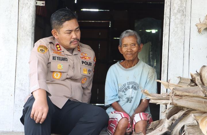 Di rumah sederhana yang hanya terbuat dari kayu itu, AKBP Ike Yulianto tampak bercakap-cakap dengan Mbah Juminah untuk mendengarkan secara rinci terkait kabar yang menimpa lansia penyandang keterbatasan di bagian tangannya itu.