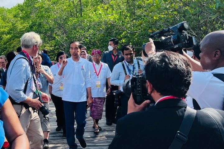 Usai berkeliling dengan para wartawan, Presiden Jokowi kembali ke Pendopo Wantilan untuk menanti kedatangan para pemimpin G20 dan organisasi internasional. Presiden Jokowi dan para pemimpin delegasi G20 dijadwalkan untuk menanam pohon mangrove bersama.