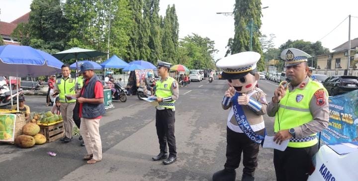 Sambil berjalan santai di antara pengunjung CFD, para petugas membagikan brosur yang berisi poin-poin penting tertib berlalu lintas, mulai dari penggunaan helm standar SNI hingga larangan penggunaan knalpot yang tidak sesuai spesifikasi.